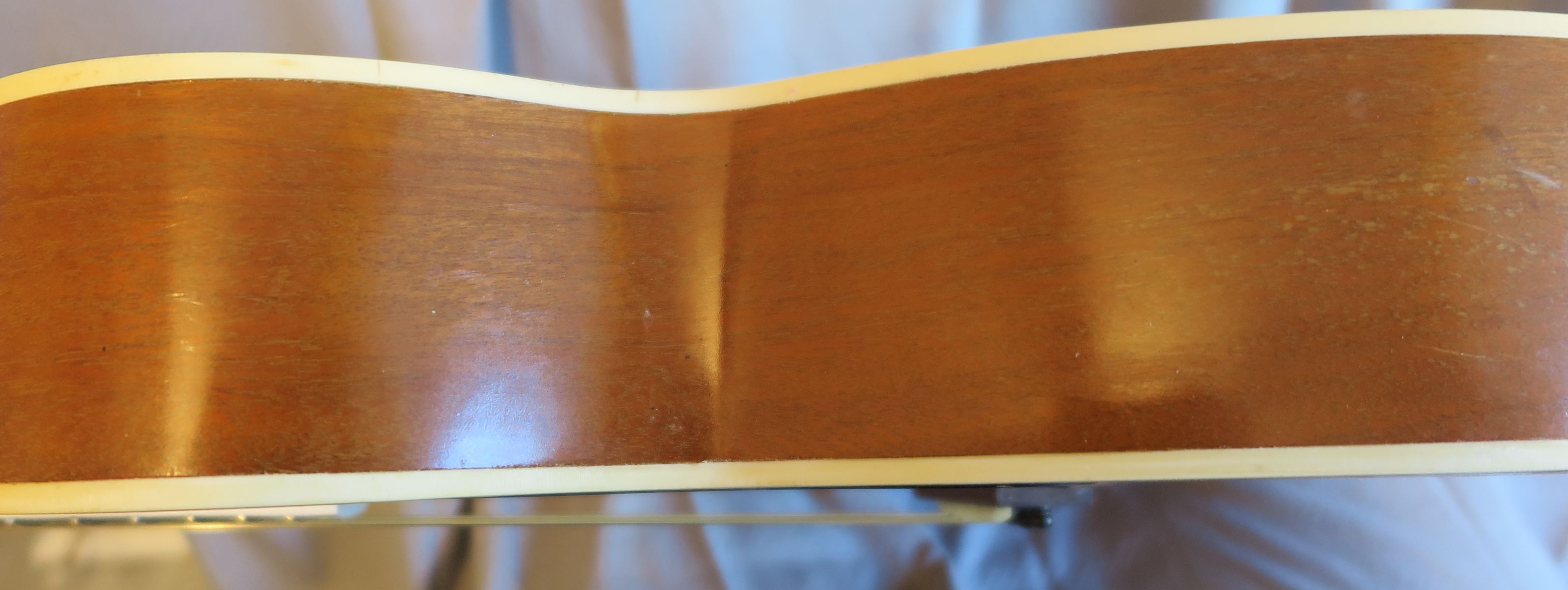 I pay attention to small details. Top braces are tapered and sanded smooth. The inside back and sides are cleaned up and sanded smooth. Back braces are rounded and sanded smooth. Harmony production glue globs are chipped out. Serial numbers (if any) are preserved.