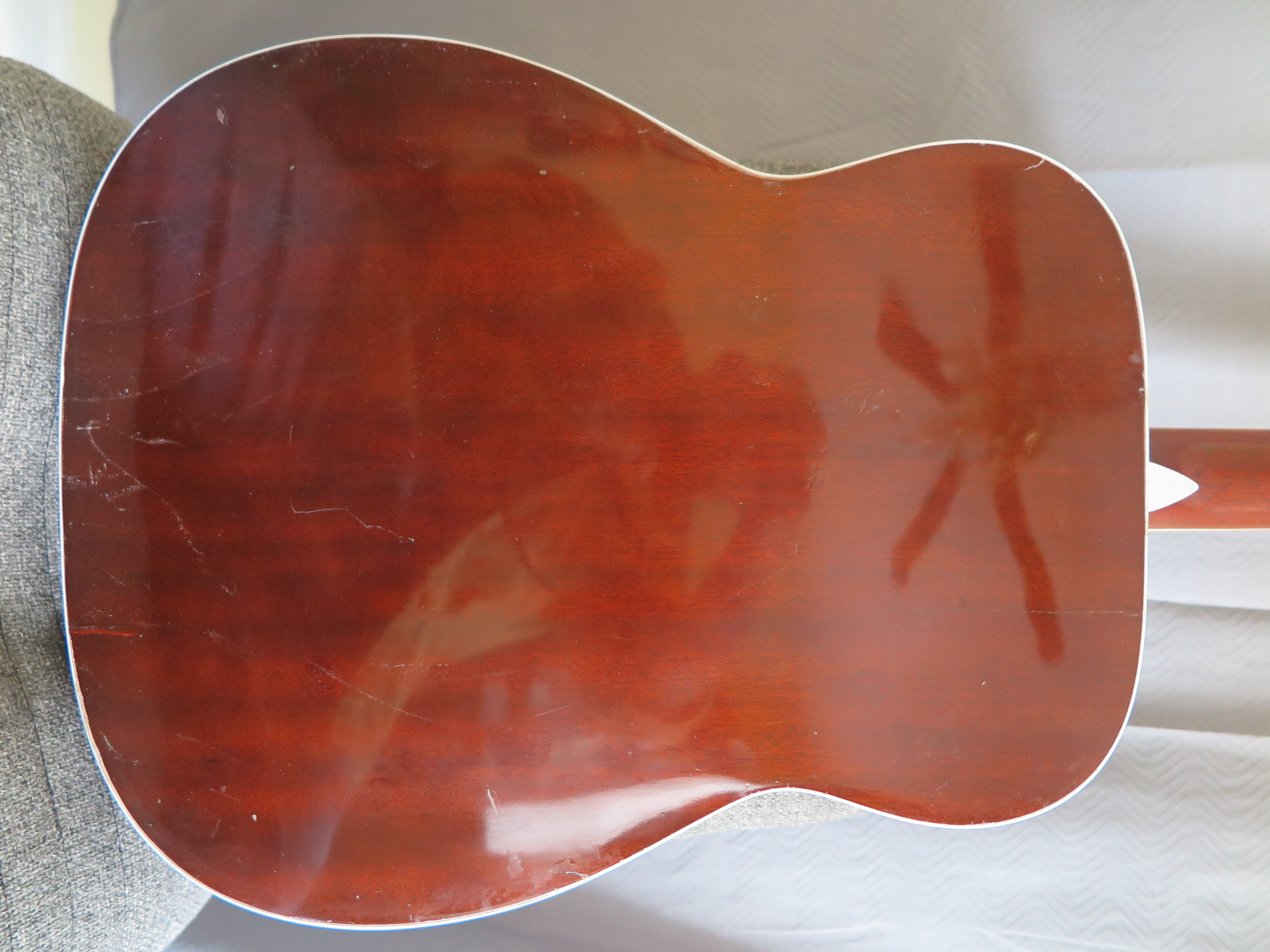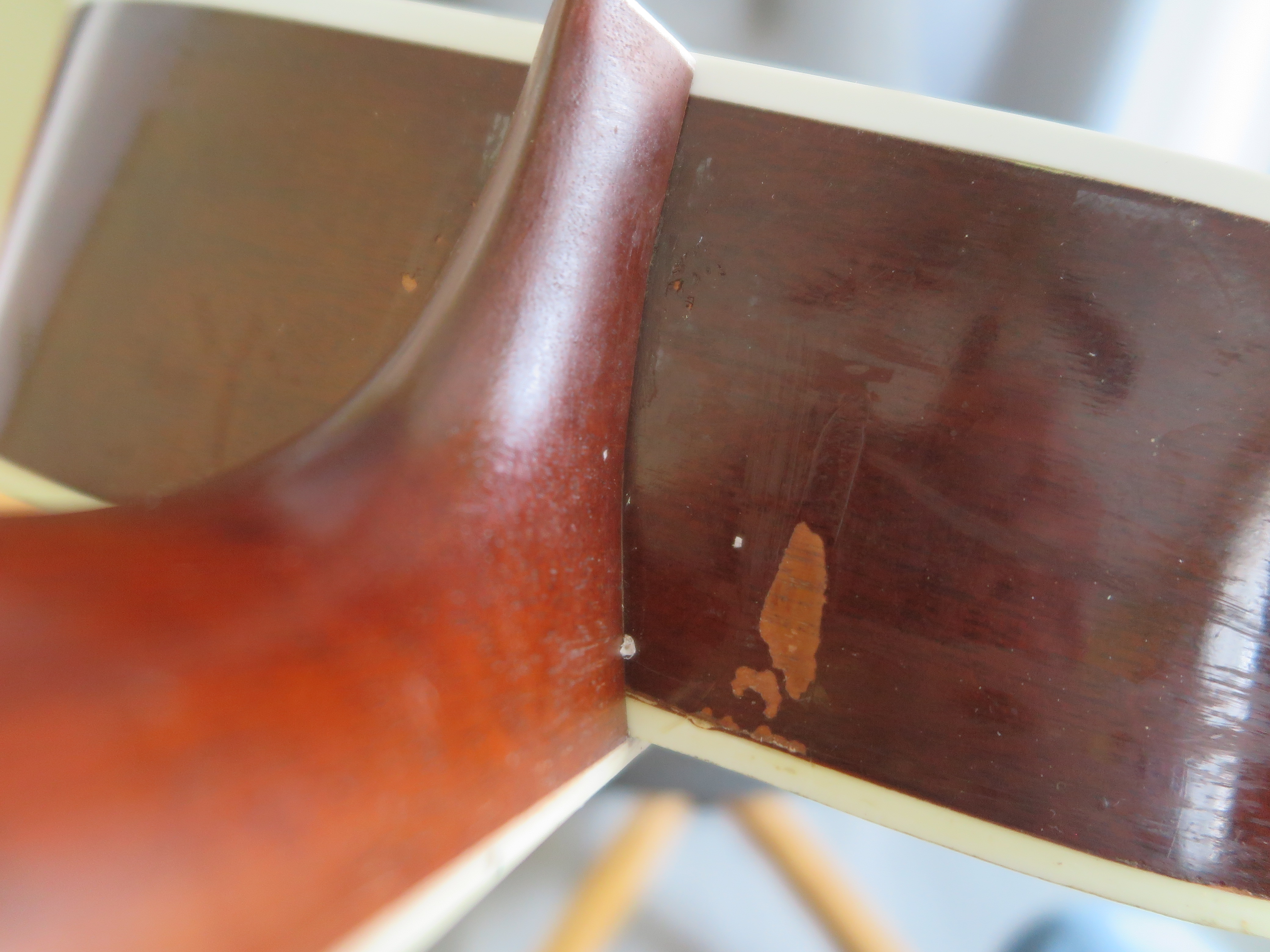- Top - Decent, not great cosmetically. Excellent structurally. refinished. Some dings; no pick wear;