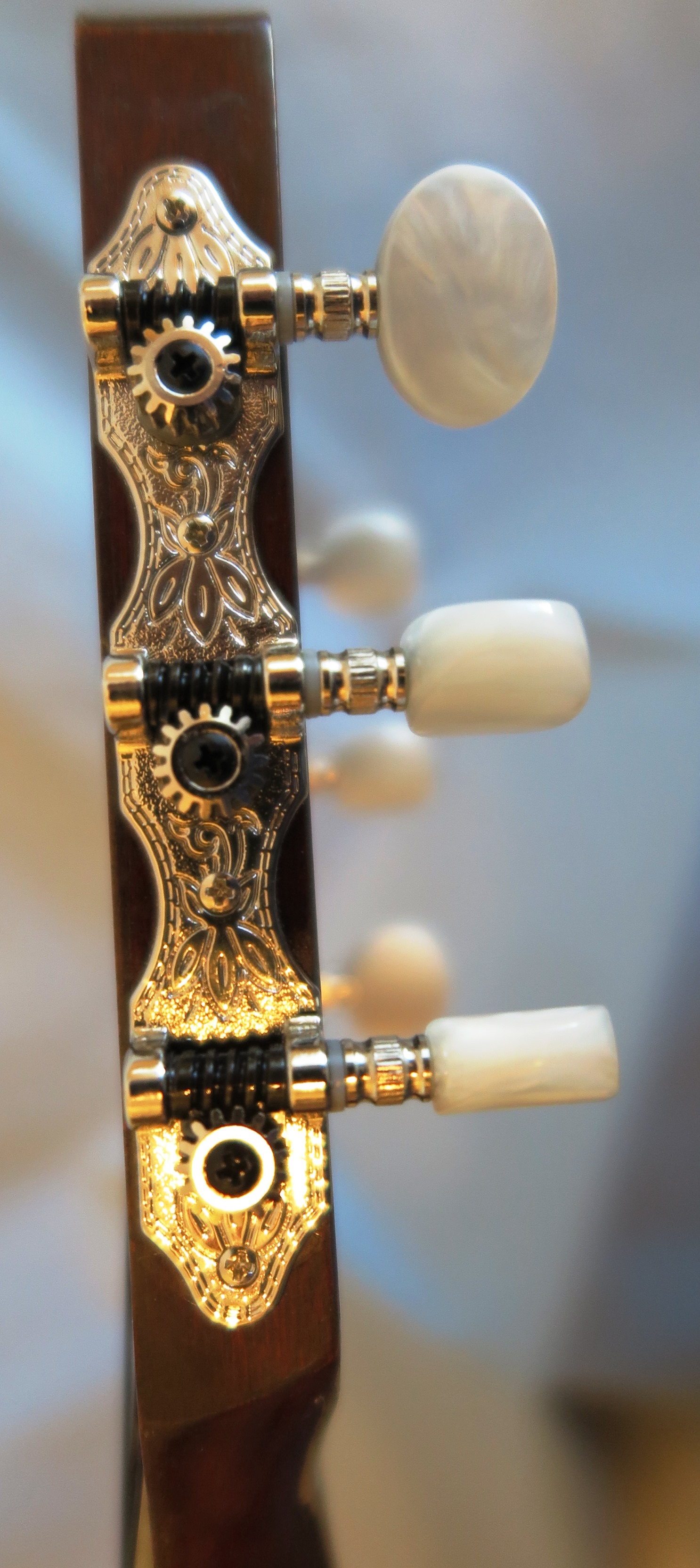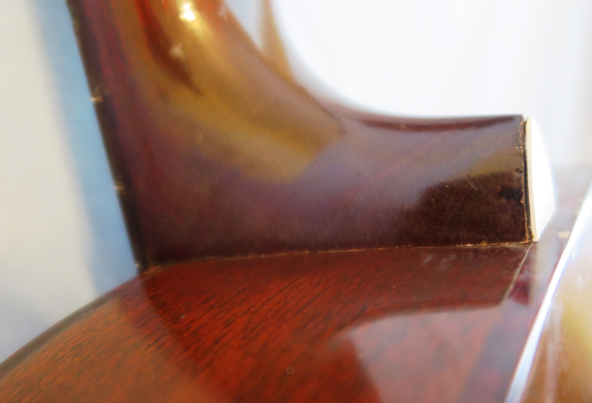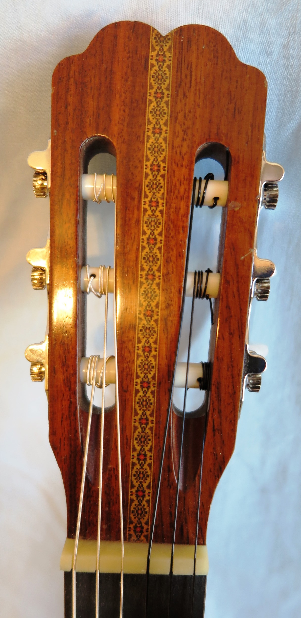 This guitar was very obviously much loved and much played, possibly by a professional or performing artist. There were extensive wear marks all up and down the fret board. These are all removed. We plained the fret board to dead flat. String tension adds just the right amount of relief.
