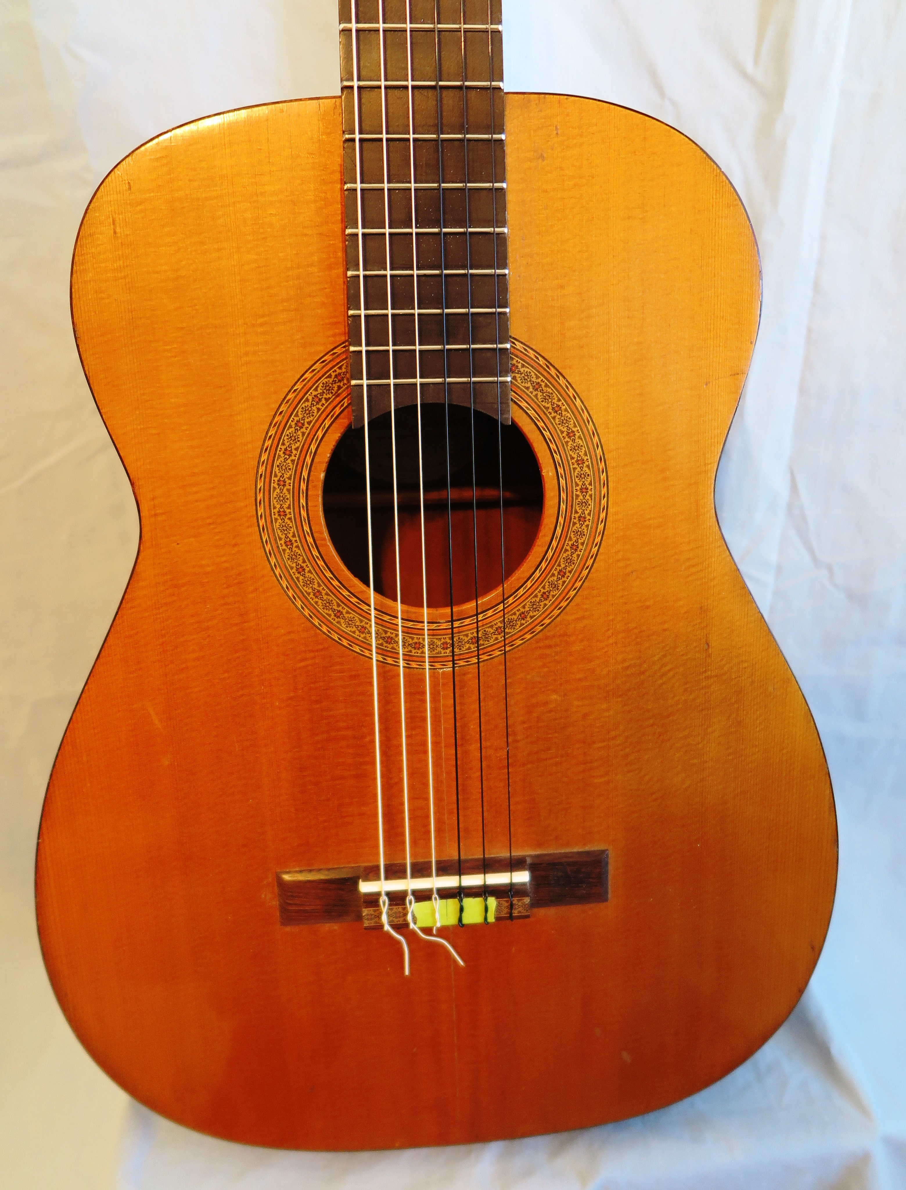 This very rare H6277 classical guitar was made during the last gasp of the Harmony company when they were attempting to drastically upgrade build quality and complete with other higher quality makers and keep the Asians at bay. It is the same model as the H177, with upgrades such as more trim on the gear head, bridge, better braces, and a better fret board. I have an H177, and this one is noticeably better. The top is as good as I have seen on a classical.