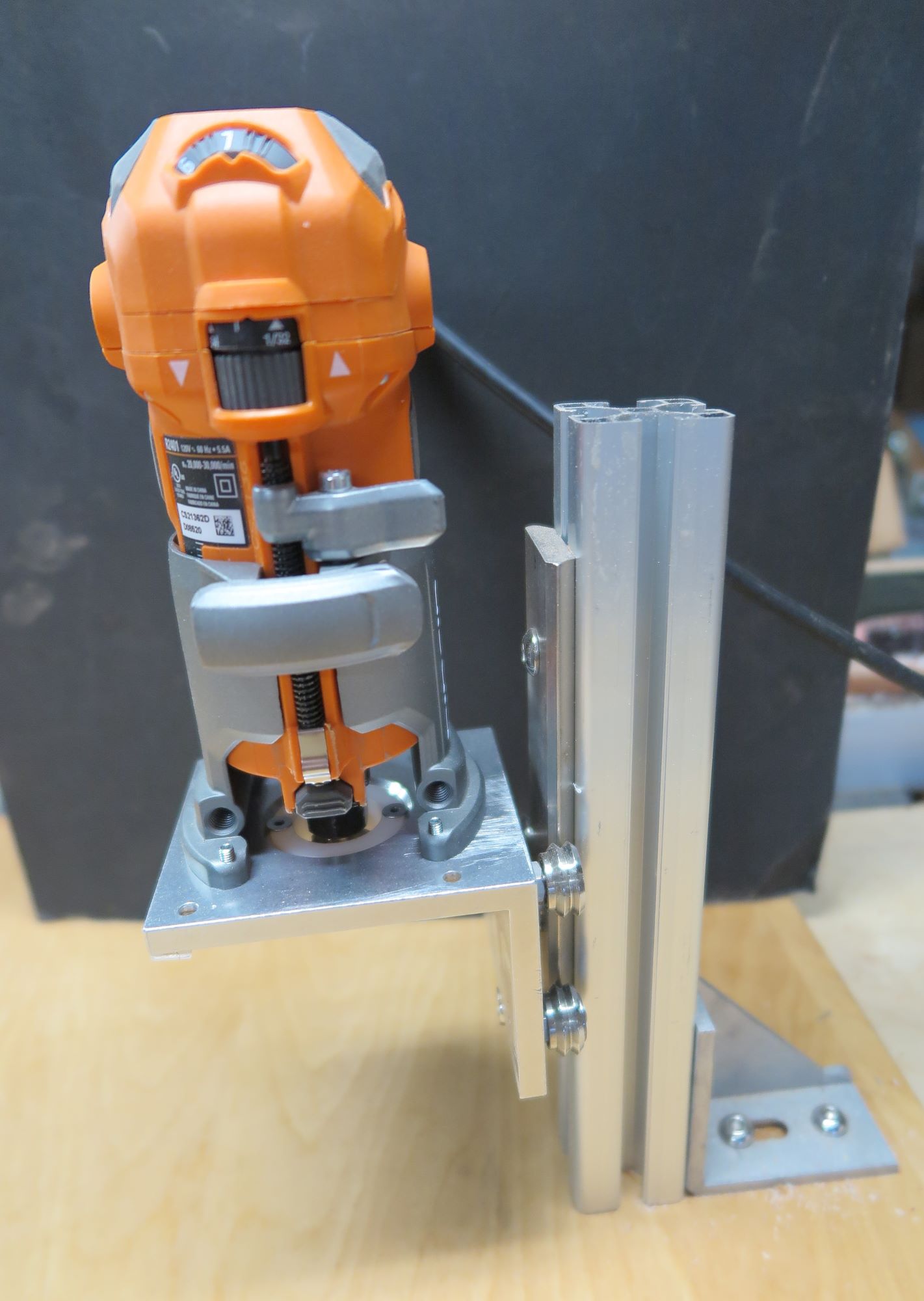 The router platform is set up for the Bosch Colt trim router with holes pre-drilled for that router’s base. When I bought the Binding Router Guide kit, I realized that the instructions suggest using the Bosch Colt trim router, so I bought one. Then it hit me: I chucked one of those in the trash ten years ago because it was completely unusable. There are two massive problems with this router. When the clamp lever is closed, both the gross adjustment and the fine adjustment settings change. There is no way to prevent this, either by adjusting the clamp lever or holding the platform different ways. Plus, the fine adjustment wheel is pain in the butt to use if it works at all. So, yet another boat anchor. Maybe I can get the sharks to bite on this thing fishing from my yacht.
